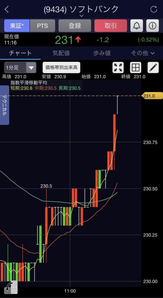 - 🕰 11:23 売り:231.0円(100株)