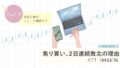しばらく板を眺めていたら、「この辺で下げ止まりそう?」と感じたポイントがあって、NTTにエントリー。