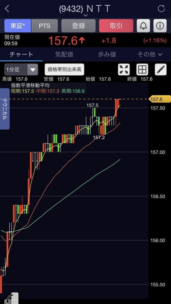 - 🕰 09:09 売り:156.3円 × 300株(+5ティック)