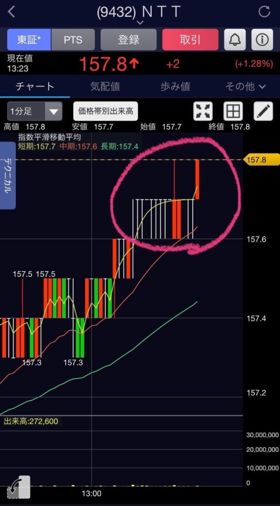 - 🕰 14:01 売り:157.8円 × 300株(+1ティック)