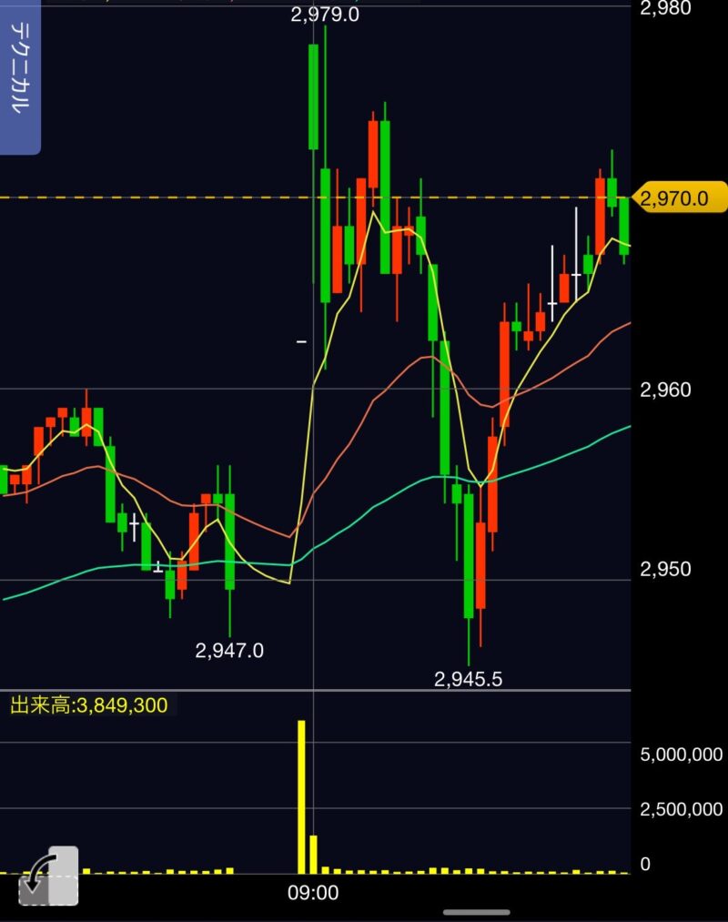 そして、ロング(200株)を後場に持ち越し…
