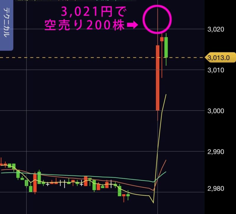 朝イチ、3,021円で空売り成功!