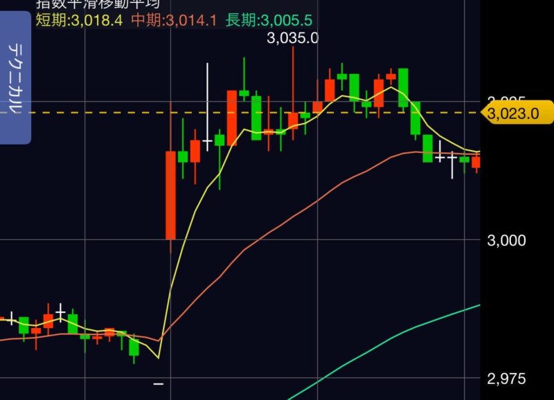あっという間に3,035円まで逆走していき、