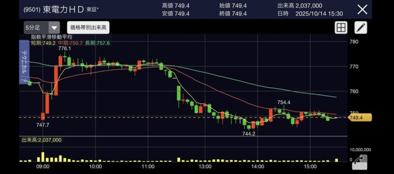 でも、いつも通り東電らしい激しい値動き(ハイボラ)のおかげで、トレードは絶好調✨